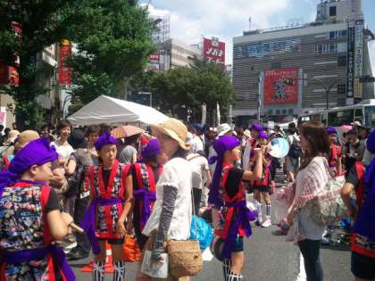 新宿エイサー 間もなくはじまります。1回目は伊勢丹まえです。