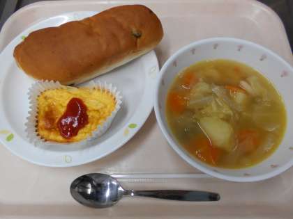 ぶどうパン キッシュ 白インゲン豆の田舎風スープ 牛乳