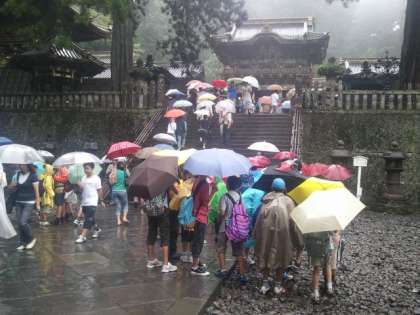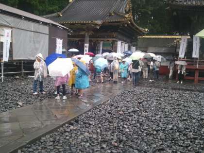 交通渋滞もなく、順調に東照宮に到着しました。現地の天気は残念ながら雨ですが、雨の陽明門も風情があります。