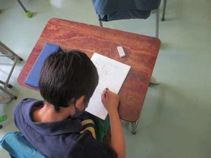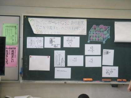 2年生の算数では、2桁のひき算を学習し、たし算とひき算の関係について考えました。まず、一人一人がノートにやり方を考え、書きます。どの子もよく考え、考えたことを筆算や図、文章に表していて、感心しました。その後、代表の子がミニホワイトボードに書き、それを黒板に掲示して、学級全体で考えを教習し、深めていきました。子どもたちが友達の考えを生かして、深めていく姿に驚きました。