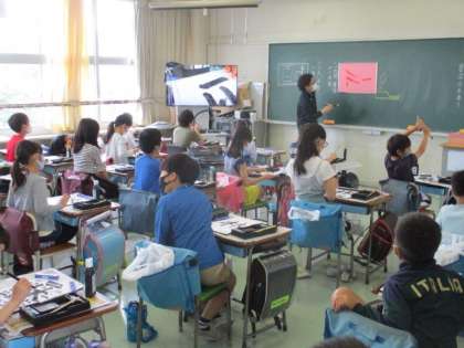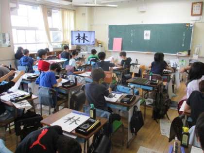 4年生は書写で「林」と書いていました。「林」では、「へん」と「つくり」の組み立て方に気を付けて書くことが目標です。納得できる字が書けたでしょうか?