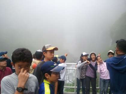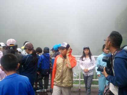 華厳の滝の標高に雲があるようです。バスから降りたところから霧の中で、観瀑台からも、滝つぼがようやく見える程度でした。