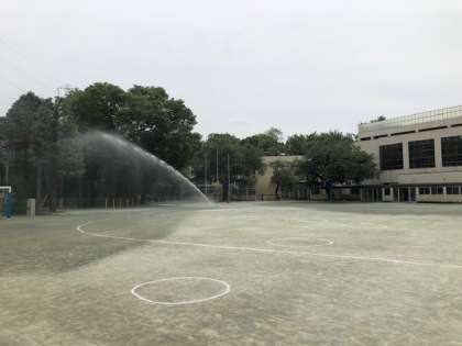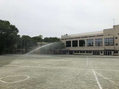 今日もいい天気です。子どもたちがいない隙にスプリンクラーで水をまきました。