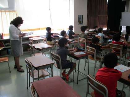 明正小の外国語学習の様子を確かめるために、世田谷区教育委員会から英語教育推進アドバイザーの方においでいただきました。授業を参観してもらい、よりよい授業にするためのアドバイスをいただきました。子どもたちが意欲的に英語でコミュニケーションを図ることができるようこれからも取り組んでいきます。