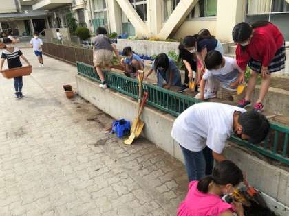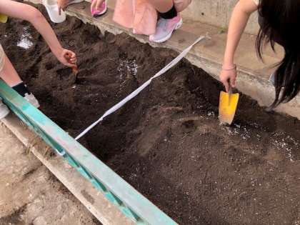 昨日、5年生は校庭の花壇を耕し、野菜作りの準備をしていました。今年の総合的な学習の時間は野菜作りからスタートするようです。オクラ、きゅうり、トマト、枝豆、じゃがいもなど、育てたい野菜が候補として挙げられました。しかし、ある児童がこの時期に種イモを植えて収穫までに要する期間を調べてきた結果、じゃがいもは夏休み前に収穫するのは難しいと分かり、じゃがいもは候補から外すことにしたそうです。課題を子どもたち自身で解決していくこのような姿を、これからも楽しみにしています。