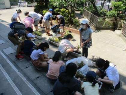 健康委員会では、校内の蛇口を下に向けることを呼びかけるポスターを作製し、掲示してくれました。栽培委員会では、草花の植え替えをしてくれました。それぞれの委員会が明正小を過ごしやすく、気持ちよくする取組を進めてくれています。