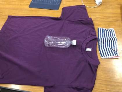 プールでの指導が始まるにあたり、全教員が心肺蘇生法やAED使用法の講習を受けました。毎年、プールでの指導の前に必ず全教員が受講しています。(昨年度はプールでの指導がなかったため未実施)今回は、日本赤十字社にご協力いただき、ZOOMによる講習会を開催することができました。用意するのは人に見立てるTシャツと、胸骨圧迫の心肺蘇生に使用する500mLのペットボトル、AEDに見立てるA4サイズの用紙とカード2枚です。カード2枚はAEDのパッドとして使用しました。新型コロナ感染症への対策として今は人工呼吸は行わず、胸骨圧迫の心肺蘇生のみを行うようにすること、また、傷病者の口や鼻をタオルやハンカチなどで覆ってから心肺蘇生を行うことを学びました。終了後、受講証を無事にいただくことができました。事故がないように気を付けてまいりますが、万が一起きてしまった際の適切な対応に、今回の研修を生かしていきたいと思います。