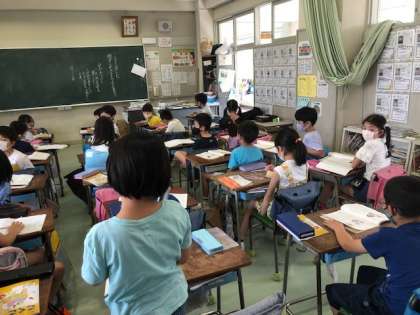 3年3組では、国語「こまを楽しむ」の学習で、感想を伝え合う活動を行いました。「こまの種類」「こまの楽しみ方」「選んだ理由」を明らかにして、伝え合いました。「わたしは色変わりこまを選びました。こまを回すといろいろな色が見えます。とてもきれいで、気分がよくなるので色変わりこまを選びました」と、上手に感想を伝えていました。