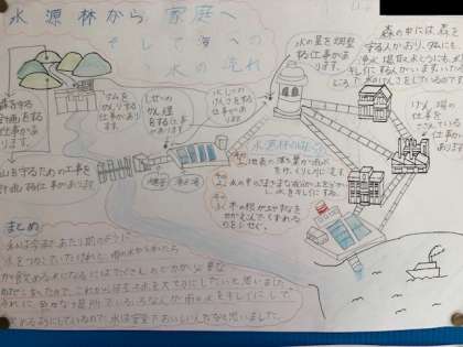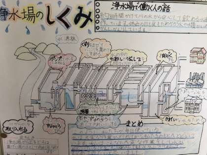 本日から、個人面談が始まります。短い時間ではありますが、お子様の学校や家庭での様子を保護者の皆様と共有させていただき、今後の指導に生かしていきたいと考えています。写真は4年生教室前の掲示物です。社会科で学習した「浄水場のしくみ」と「水源林から家庭に水が届くまで」についてまとめました。一人一人よく学んでいることが伝わります。個人面談でお越しの際には、教室内外の掲示物もとうぞご覧ください。