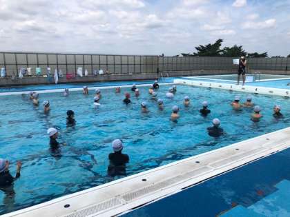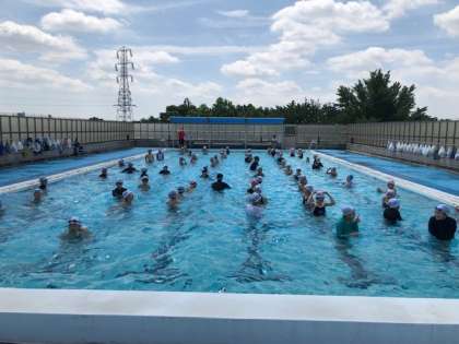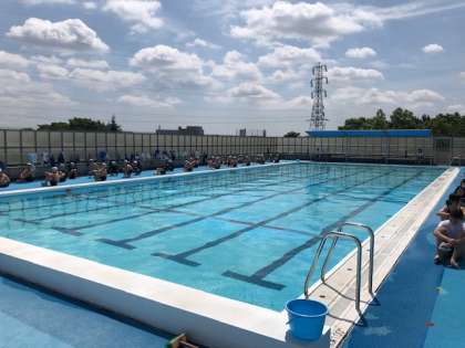 今日は快晴に恵まれ、プールに入ることができました。今日は5年生とひまわり学級がプールでの学習を行いました。今年は学年を2つに分けるため、1時間目を5年3,4組、2時間目に5年1,2組というように1クラスあたり1時間しかプールに入ることができません。それでも、プールに入ることができる喜びでいっぱいの様子でした。