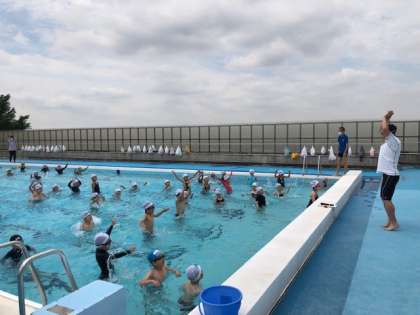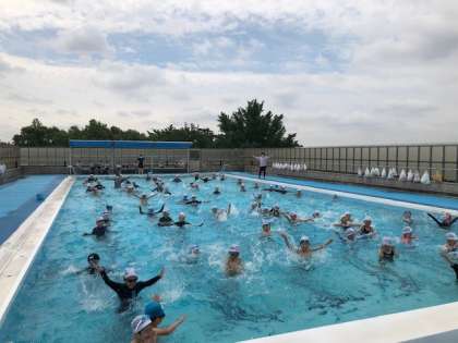 先週は天気に恵まれなかった2年生ですが、今日は気温が上がりプールに入ることができました。小学校生活では初めてのプールです。みんなとてもうれしそうでした。