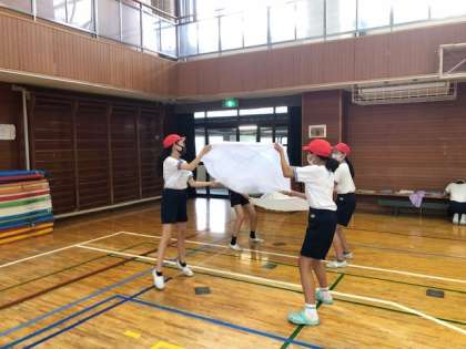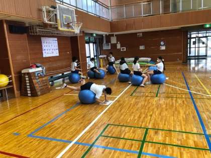 6年4組の研究授業に向けての第2時間目の授業の様子です。バランスボールやドッジボール、長縄を使って、バランスを取ったり、タイミングを合わせたり、力を調整したりする「巧みな動き」をこれから高めていきます。今回はそれらの用具を使って高めていく前の「基になる動き」を確認しました。次からはその基になる動きをどのように高めていくかを子どもたち自身が考えていきます。
