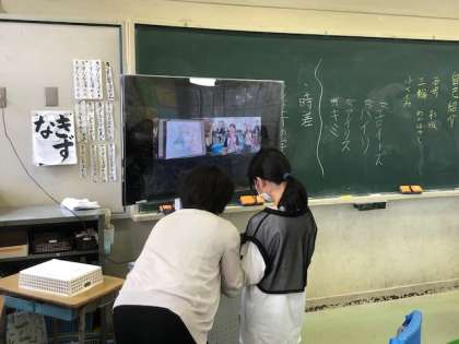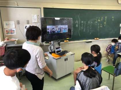 オーストラリア・オリンピック委員会主催の「ともだちプロジェクト」で出会うことができたシドニー日本人国際学校のみなさんと明正小6年3組がZOOMでつながりました。自己紹介に始まり、質問コーナーで盛り上がりました。今日交流したクラスは5年生4名6年生4名の計8名のクラスでした。好きな漫画は何ですか?という明正小からの質問に「鬼滅の刃」という返事が返ってくると、教室からは驚きの声が上がりました。登場するキャラクターのイラストを画面越しに見せると、今度はあちらの教室から歓声が上がりました。とてもリラックスした雰囲気で和やかな交流の時間となりました。終了後の振り返りでは次の交流に向けて話し合いました。「もっと計画的に交流を進められるように準備しよう」「イラストでしりとりするなど、一緒に遊べる方法を考えよう」など、とても前向きな意見が出ました。今後の交流が楽しみです。