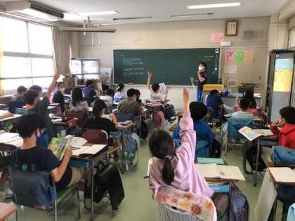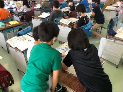 4年2組では社会科の授業を公開しました。「資源のゆくえ」について学びました。資料集を使って鉄やペットボトル、食品トレーなどが回収後どのようになっていくかを調べました。ゴミは最後、埋め立てられるが、資源は様々な形で再生されることが分かりました。その過程で「SDGsだね」とつぶやく児童がいました。SDGsと日常の生活がつながった瞬間でした。リサイクル・リユース・リデュースの「3R」の言葉も学習しました。