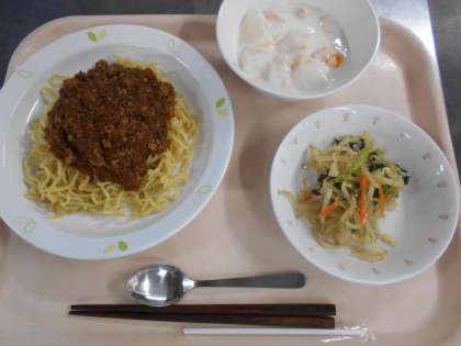 ジャージャー麺 ナムル フルーツヨーグルト 牛乳
