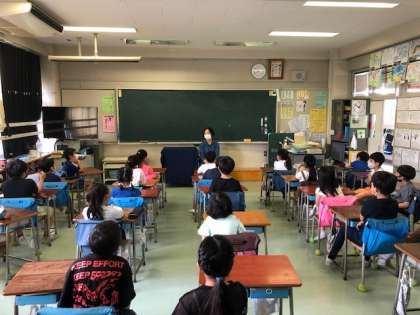 昨年度は新型コロナの影響で一度も実施できなかった「さくらママ」の皆様による読み聞かせを、本日久しぶりに実施することができました。今日は2−5、1−2、1−5の3クラスで行っていただきました。長いお話も一切本を見ず、子どもたちの表情を見渡しながら語りかけています。子どもたちもその語り口にすっと引き込まれ、物語の世界を楽しんでいました。明日も他のクラスで読み聞かせを実施します。