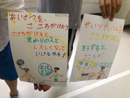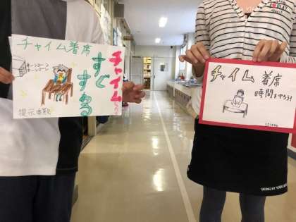 今学期最後の委員会活動でした。写真は掲示委員会作成のポスターです。「チャイム着席」を呼びかける内容でした。なぜこのポスターを作ったのか尋ねてみると、「チャイムが鳴った後も遊びをやめられずに遊んでいる人をよく見るから」と話していました。高学年から見る明正小の課題です。児童同士で声を掛け合い、自分たちで明正小をもっとよくしていこうという自治的な雰囲気がさらに広がっていくことを願っています。
