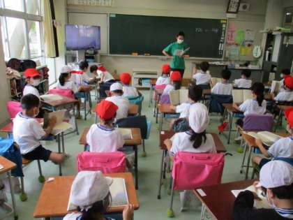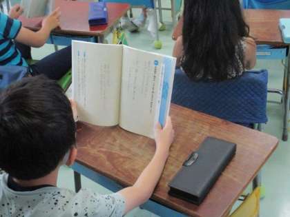 1年生では、漢詩「胡隠君を尋ぬ」を、2年生では「論語」を学習しています。教科「日本語」は、日本語の響きやリズムを楽しみながら音読したり、日本の伝統文化や人々の生き方について深く考え、表現したりすることで、コミュニケーション力を育むことをめざし、平成19 年度に世田谷区が独自につくった新しい教科です。1年生も2年生も、いろいろなやり方で音読をし、日本語を楽しんでいました。