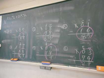 2年生は、算数で「たし算とひき算」を学習しています。4月に初めて筆算を学習した2年生ですが、今では繰り下がりのある3桁ー2桁のひき算もできるようになりました。子どもたちはあっという間に成長していくんだなあ、と感慨深いです。写真は、友達の考えを、他の子が説明する様子です。いろいろな考えに触れられるのも、学校で学ぶ良さだと感じています。