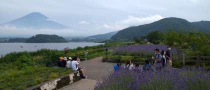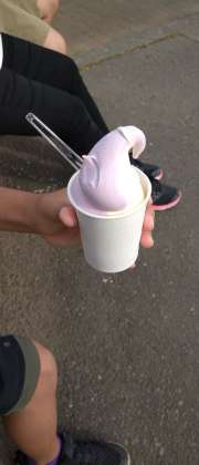 散歩で大石公園に来ました。ソフトクリームが大きくておいしいです。ラベンダーかわきれいに咲いています。いいにおいがします。みんな元気です。