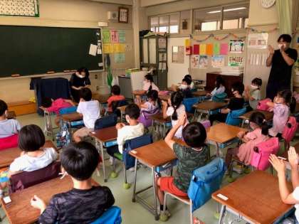今日は1年3組で、さくらママによる読み聞かせがありました。巧みな話し方に、子どもたちはお話の世界にすっと引き込まれ、くすっと笑える場面や、驚きがある場面などに自然に反応している姿がたくさん見られました。お話が終わると自然に拍手が沸き起こっていました。