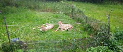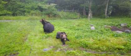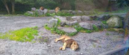 サファリパークに到着しました。クマ、ライオン、トラ、チーター、ゾウ…いろいろな動物を見学しています。