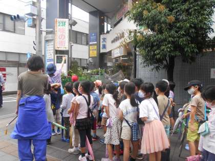 9日は成城の町を探検しました。天気が心配な中、予定を早めて校外に出たおかげで、かさをさすような雨になる前に帰校できました。帰ってきたあとのふり返りでは、町の中で見つけたものやお店を発表しました。「他の町にも行きたいな。」「お店の中にも入ってみたい。」「見てきたものを地図にしてみたいな。」と、きらきらした表情で話していました。子どもたちの『やりたい』を大切にしていきたいです。