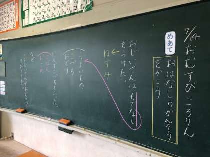 1年生の国語の学習も大詰めです。慣れ親しんだ人も多いおとぎ話「おむすびころりん」の学習をしていました。今日はお話の大体をつかんで感想を交流しました。元気に声をそろえ「おむすびころりん すっとんとん」という音読が各教室から聞こえてくるのが楽しみです。