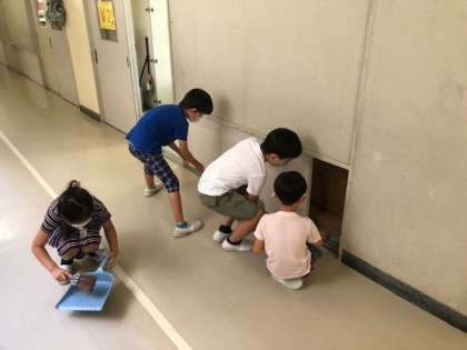 1年生も大掃除に奮闘しました。机といすを全て廊下に出してきれいに床拭きをしたり、普段なかなか雑巾掛けをしない場所にも手を伸ばして拭いたりと熱心に取り組みました。4月から使ってきた場所をきれいにし、1学期を気持ちよく終わることができそうです。