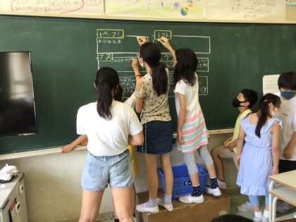 今日の授業では、夏休み中の野菜の世話をどうしたらいいかをグループでわかれて話し合っていました。何に気をつければいいかや水やりのタイミング、実がどのくらいになったら収穫したほうがいいかなどをiPadを使って真剣に調べていました。