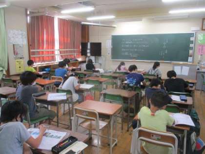 サマースクール2日目です。今日も静かに学習に取り組む様子が見られます。ドリルや読書とともに、iPadで、キュビナや調べ学習に取り組む子もいました。