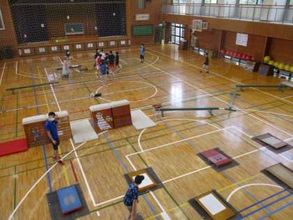 体育館では、「サスケ」「キックターゲット」「ボッチャ」が行われました。