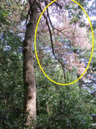 世田谷トラストまちづくり財団の方から、里山(成城3丁目緑地)の木について連絡をいただきました。里山のクヌギやコナラの木の一部が「カシノナガキクイムシ」の被害を受けているそうです。「カシノナガキクイムシ」は5mm位のカミキリムシの仲間で、円形の筒のような体をしています。木の幹に穴を開けてしまうそうです。穴を開けられてしまった木は、弱ってしまい、枯れてしまうこともあるそうです。