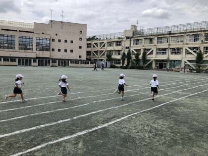 ちょうどよい陽気に恵まれ、1年生は50m走の計測を行いました。1学期にも計測をしましたが、どの子も「1学期より速くなった!」と喜んでいました。走り方を見ても、1学期よりもだいぶ力強く地面を蹴ることができていました。コロナ禍の中、体育の時間は貴重な運動の機会です。感染対策を十分にとりながら、全力で体を動かす時間も大切にしていきます。