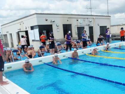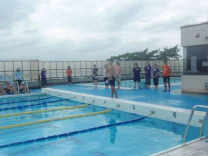 台風の影響による天候が心配される中、6年生の水泳記録会を実施しました。朝から、時折降る雨のため実施が危ぶまれましたが、何とか予定通り記録会を行うことができました。6年生の子どもたちは、自分の記録を目標にしたり、友達と競い合うことを目標にしたりしながら記録会にのぞみました。後日一人一人に記録証が渡されます。