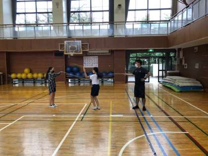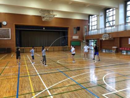 10月1日〜15日の2週間は「体力づくり週間」です。体育の授業や休み時間、全クラスで長縄跳びに挑戦します。その取組にあたっては運動委員会が全校児童に向けて提案をします。その提案の中でいろいろな跳び方を披露して、長縄跳びの多様な楽しみ方を紹介するようです。そのために今、休み時間に体育館で練習をしています。とても楽しそうに取り組んでいました。