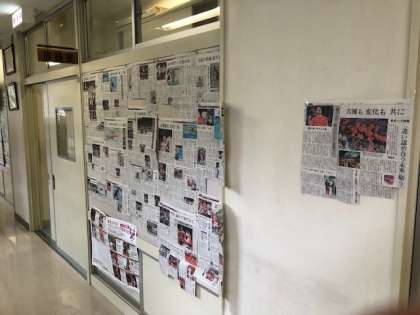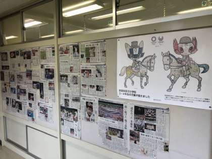 先日まで行われていたオリンピック・パラリンピック東京2020大会。今、職員室と放送室の前の掲示板には、今年の夏の熱戦と感動を伝える新聞記事がびっしりと掲示してあります。足を止めて、記事に見入る子どもたちの姿をたくさん見かけます。子どもたちの胸に残る感動シーンをじっくりと聞いてみたいと思います。
