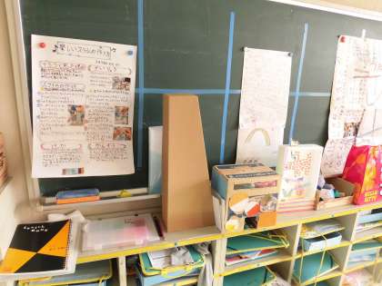 3年生の教室に、夏休みの自由研究が展示されていました。
