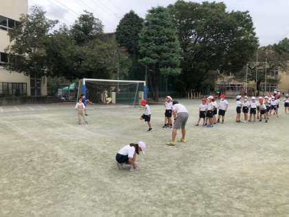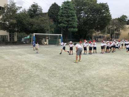 2年生の体育では長縄を用いて運動遊びをしていました。大波を跳び越える遊びをしていました。みんなで跳ぶタイミングを知らせる声を掛けながら、楽しく運動遊びをしました。入るタイミングがなかなかつかめず、縄とにらめっこをしている姿もあり、とても微笑ましく映りました。こういった遊びに慣れながら跳び方の種類を増やし、より楽しく遊べるように取り組んでいきます。