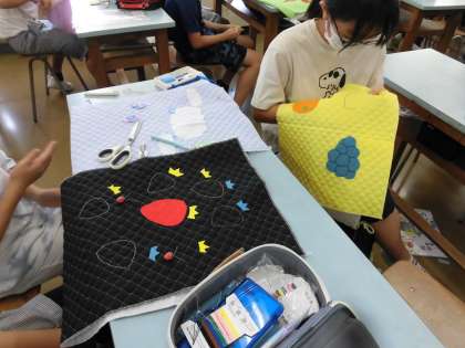 3,4時間目には家庭科室で6年生がトートバッグ作りをしていました。