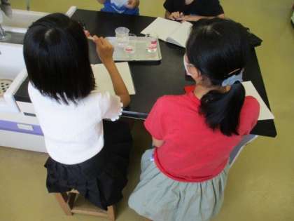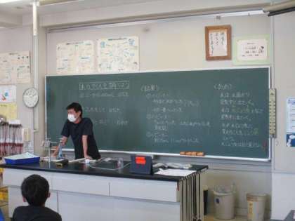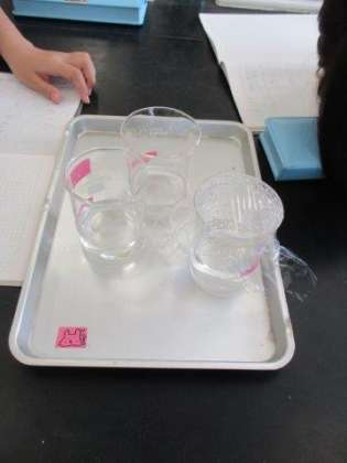 4年生は理科で「自然の中の水」について学習しています。ビーカーに入れた水は時間を置くとどうなるのか? 日なたに置いた水は? 日陰に置いた水は? ラップで蓋をした水は? 「雨の降った後、校庭にたまった水たまりは、いつの間にか無くなるけど…」と、生活経験から予想し、実験しました。水は、水蒸気となって蒸発したことが分かりました。次の時間からは、目に見えない水蒸気を「捕まえてみる」そうです。どのようなことが分かるか、楽しみです。