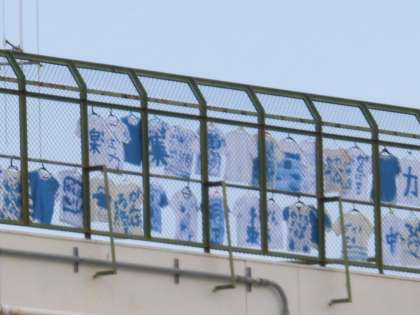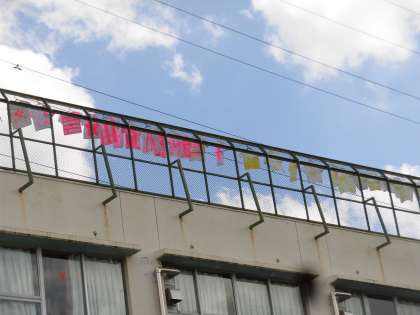 先週の晴れた日には、それぞれのクラスカラーに色付けされたものが屋上で万国旗のように風に揺れていました。「がんばろう」「全力」などの言葉が意気込みを感じさせます。