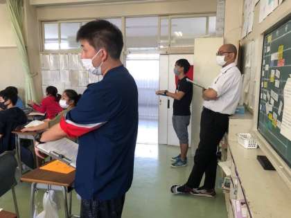 他学年や他の学級の授業を教員同士が見合い、意見や感想を伝え合うことを通して自身の授業力向上につなげています。授業がなく空いている時間や、ほんのわずかな時間を利用して授業観察をしています。教職員も、学び合い、高め合う時間を大切にしています。
