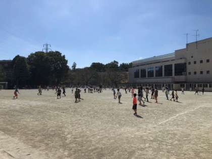 休み時間、校庭ではたくさんの児童が元気に遊んでいました。