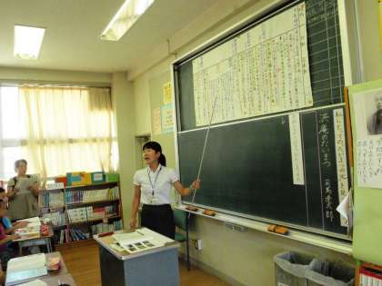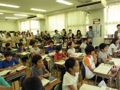 今日は世田谷区内の小学校の先生方が、各学校へ出かけ、授業についての勉強をする研修日でした。明正小学校では、5年2組の金子教諭が国語の研究授業を行いました。図書室での授業であったり、100人を超える他校の先生の参観だったりと、緊張感にいっぱいの中の国語の学習でした。でも、誰もが真剣に話を聞いたり、発言したりと立派な態度でした。