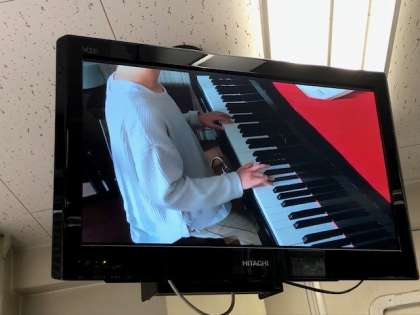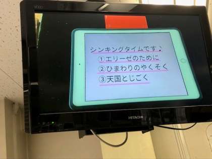 今日は音楽集会がありました。ミュージック委員会が音楽にまつわるクイズをiPadで作成しました。流行の音楽から、誰もが知っている曲、ピアノの演奏など、いろんな曲の曲名を当てる問題を作りました。「アンパンマンの歌声は誰の歌声でしょう?」のクイズでは校長先生の歌声が流れ、子どもたちは大喜びでした。