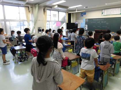 「立ちましょう。」の指示に続いて、みんなで校歌を歌います。少し前まで2番を覚えきれていなかったようですが、今日は最後までしっかり声を出して歌うことができました。