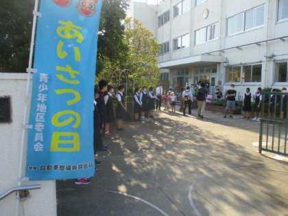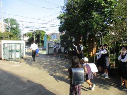 今朝の「明正おはようDAY」には、砧中学校から十数名の生徒が来てくれました。登校する明正小の子たちに、元気に優しく挨拶をしてくれました。はじめはびっくりした子もいましたが、元気に挨拶を返すことができました。