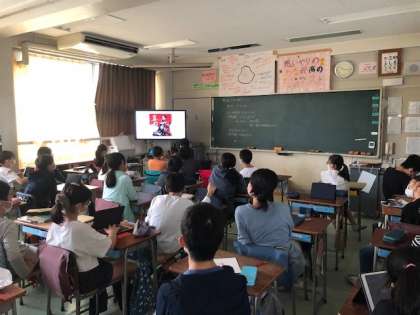 6年社会科の歴史の学習は、戦国時代に入りました。6年1組では、それぞれが関心をもった戦国大名について調べたことをiPadを使ってまとめ、みんなに紹介する活動をしていました。