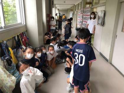 今日の休み時間は音楽鑑賞教室の5年生を除く全学級が長縄跳びに取り組む「長縄デー」でした。屋上まではみんなでまとまって移動しています。10月1日から始まった体力づくり週間の長縄跳びですが、短期間で上手になっていたり、学級の団結が深まったりしている様子がよく分かります。あと3日の体力づくり週間でそれらをさらに高めていきます。
